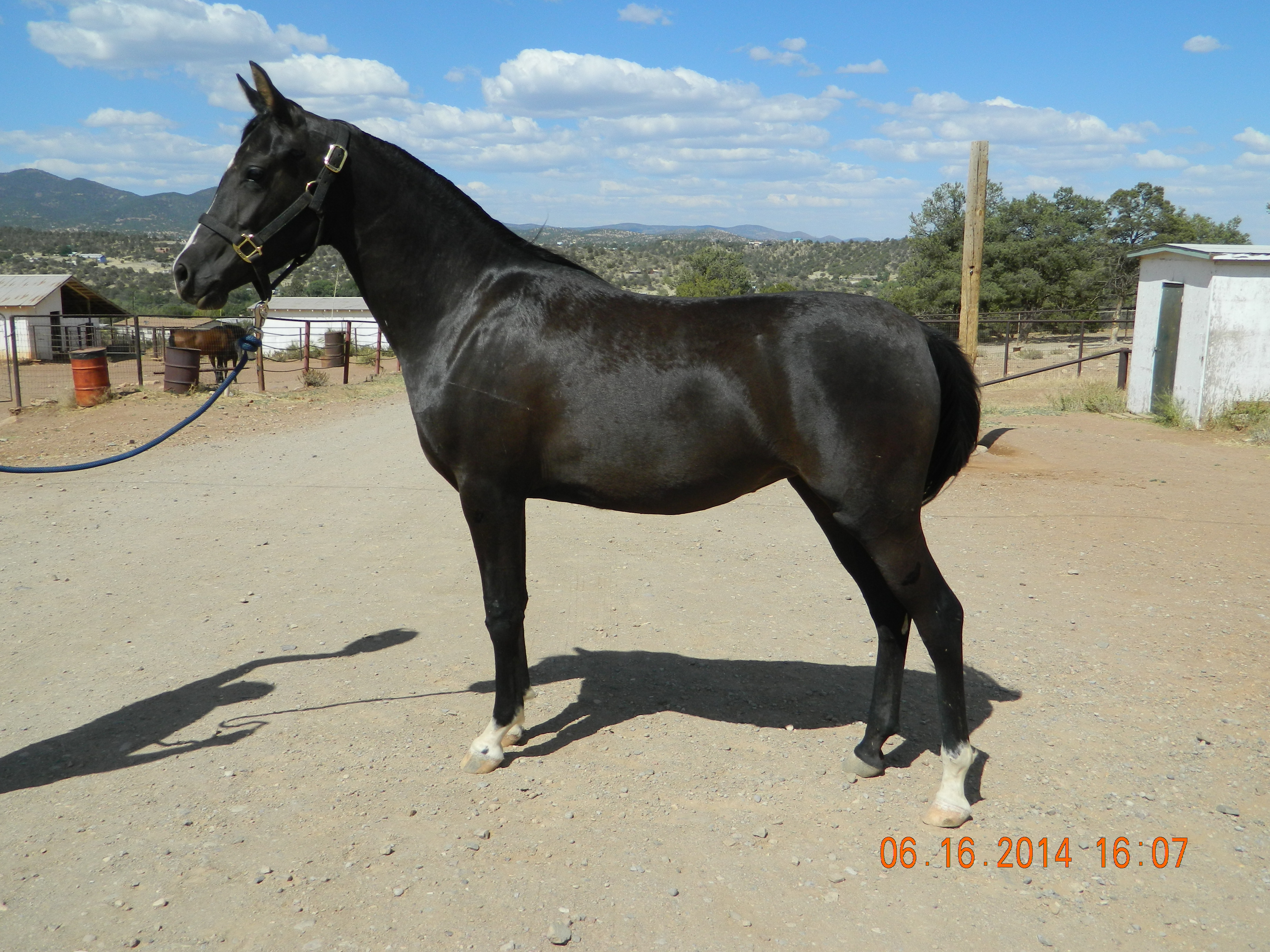 Foaled 4/6/2013 Black filly with 3 white socks, star, and strip. This filly is flashy, with her beautiful head, long neck, and level top line, she could be a show stopper. This is a very high quality special filly.